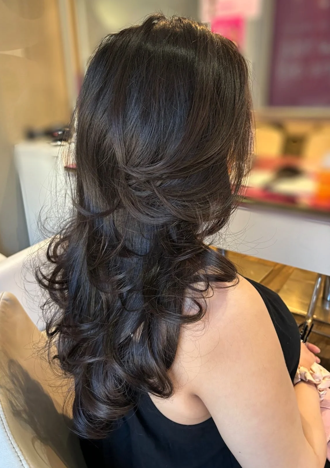 What most people do not realise is that the weight and density of dark hair is actually its greatest asset when it is finished correctly. That natural thickness is what creates the kind of body and movement that lighter hair simply cannot replicate. The deep richness of brunette strands, when the cuticle is properly sealed and the shine is drawn out intentionally, is genuinely incomparable.